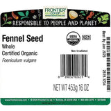 Frontier Co-op Fennel Seed, Whole, Organic 1 lb.