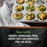 Pure, whole, organic rosemary leaves (Rosmarinus officinalis). Pungent, herbaceous, fresh, earthy taste and aroma with pine-like notes. Real rosemary flavor. No GMOs. No ETO (considered carcinogenic by the EPA). Not irradiated. Certified Organic by QAI. Kosher Certified by KSA.